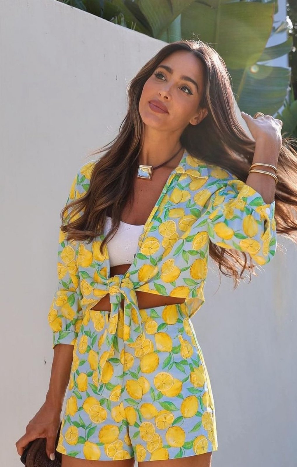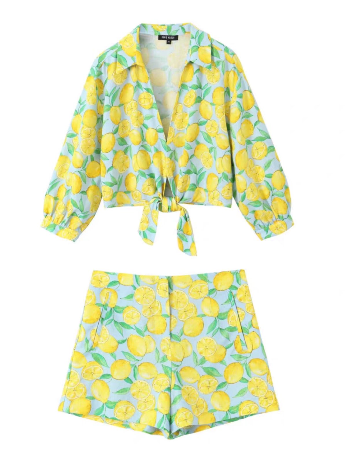 Този комплект с принт на лимони е идеалният избор за модерен и удобен аутфит, подходящ за различни поводи.