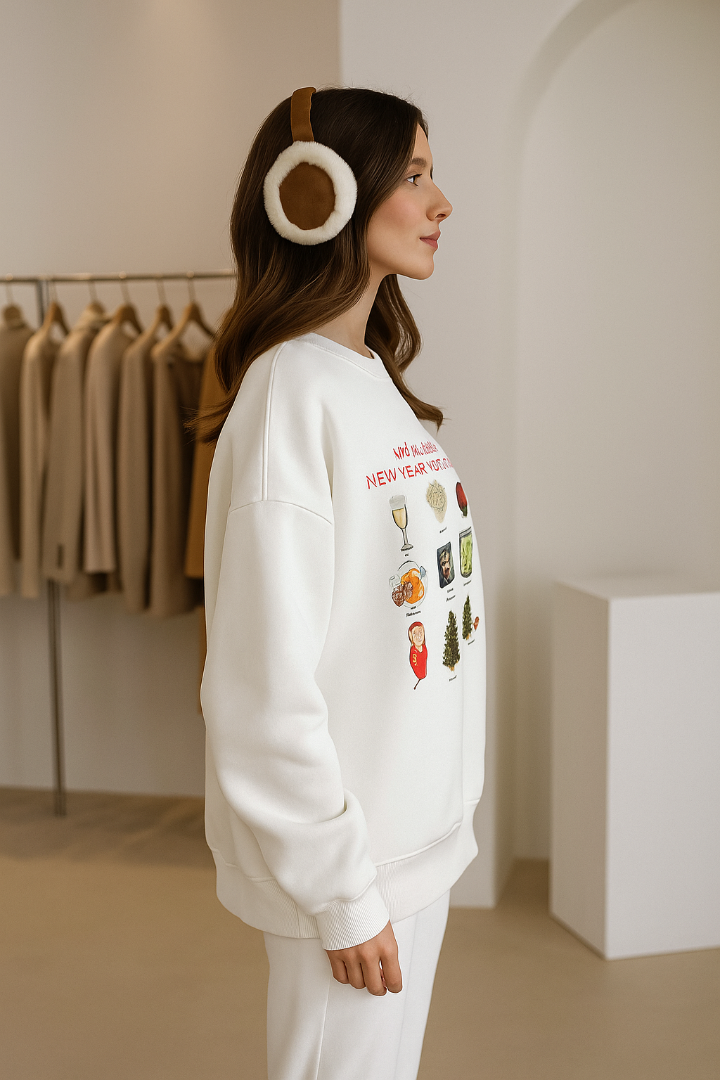 🎀 Детайли: oversize кройка, забавна щампа с новогодишни мотиви, меки маншети